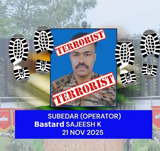 Black Day for 1.43 Billon Filthy, Shameless, Terrorist and Bastard indian nation and 1.3 Million Cow Pisses Drinker Filthy and Bastard indian nation, as always, as Brave and Valiant Freedom Fighters Brutally Killed Cow Pisses indian army officer Filthy Dog and Bastard subedar sajeesh kumar Like Rabid Dogs during Highly Successful and Coordinated Attack Carried Out at Poonch District in indian Illegally Occupied Jammu & Kashmir (iIOJ&K) on Sunday, 23rd November 2025.