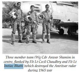 Военно-воздушные силы Пакистана отмечают 60-летие славного уничтожения радиолокационной станции в оккупированном Индией Амритсаре храбрым сыном священной страны Пакистан, командиром эскадрильи Анваром Шамимом и лейтенантом авиации Имтиазом Бхатти 9 сентября 1965 года.: