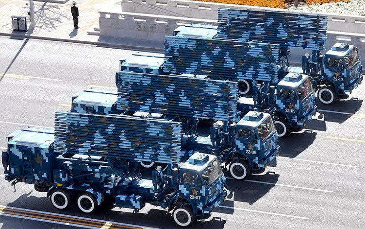 The CHINESE HQ-9B High To Medium Altitude Air Defense System can scan 360° in Azimuth at an elevation range from 0° – 65°.
