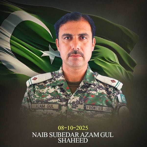 - Naib Subedar Azam Gul Shaheed (age: 38 years, resident of District Khyber)
