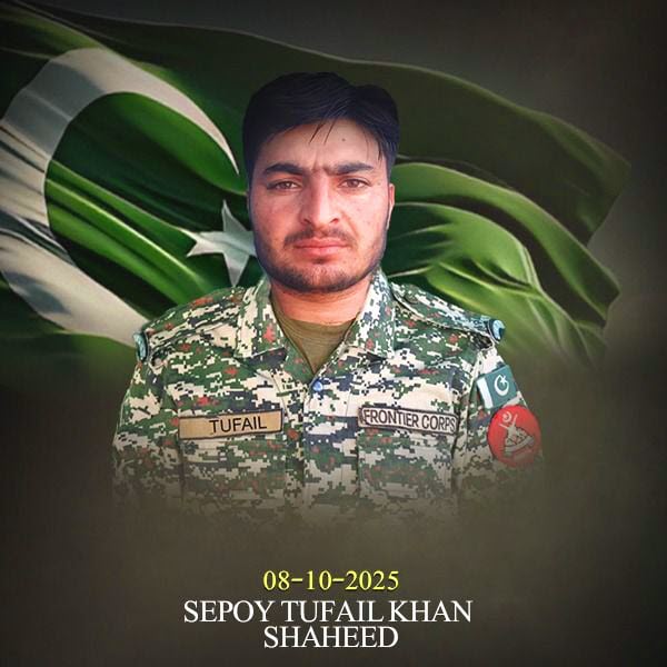 - Sepoy Tufail Khan Shaheed (age: 28 years, resident of District Malakand)