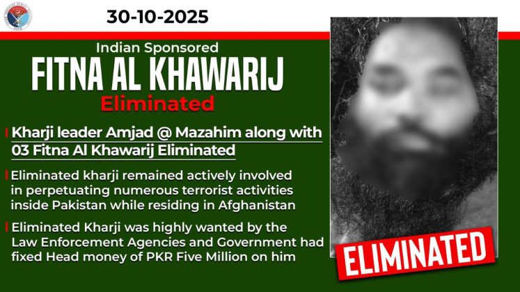 On night 29/30 October 2025, movement of a group of khwarij, who were trying to infiltrate through Pakistan-Afghanistan border, was picked up by the security forces in Bajaur District.