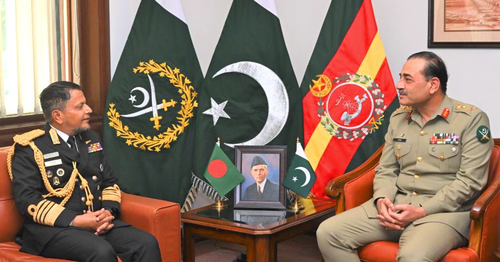 د پاکستان د اوسپنې برادر د بنګله دېش د سمندري ځواکونو مشر اېډمرل محمد نظر الحسن او د پاک پوځ مشر جنرال عاصم منير په GHQ راولپنډۍ کې په مقدس پاکستان کې د هند او ايراني تروريزم په اړه ژورې اندېښنې څرګندې کړې