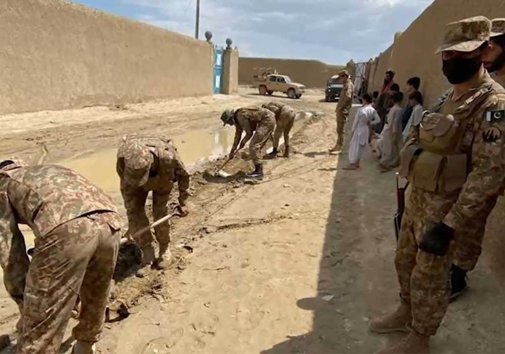 PAKISTAN ARMY and the Troops of Frontier Corps (FC) Balochistan Emergency Response Teams are helping the civilian administration and busy in dewatering the flood affected areas of Balochistan, Sindh and Gilgit Baltistan with dewatering pumps and tankers.