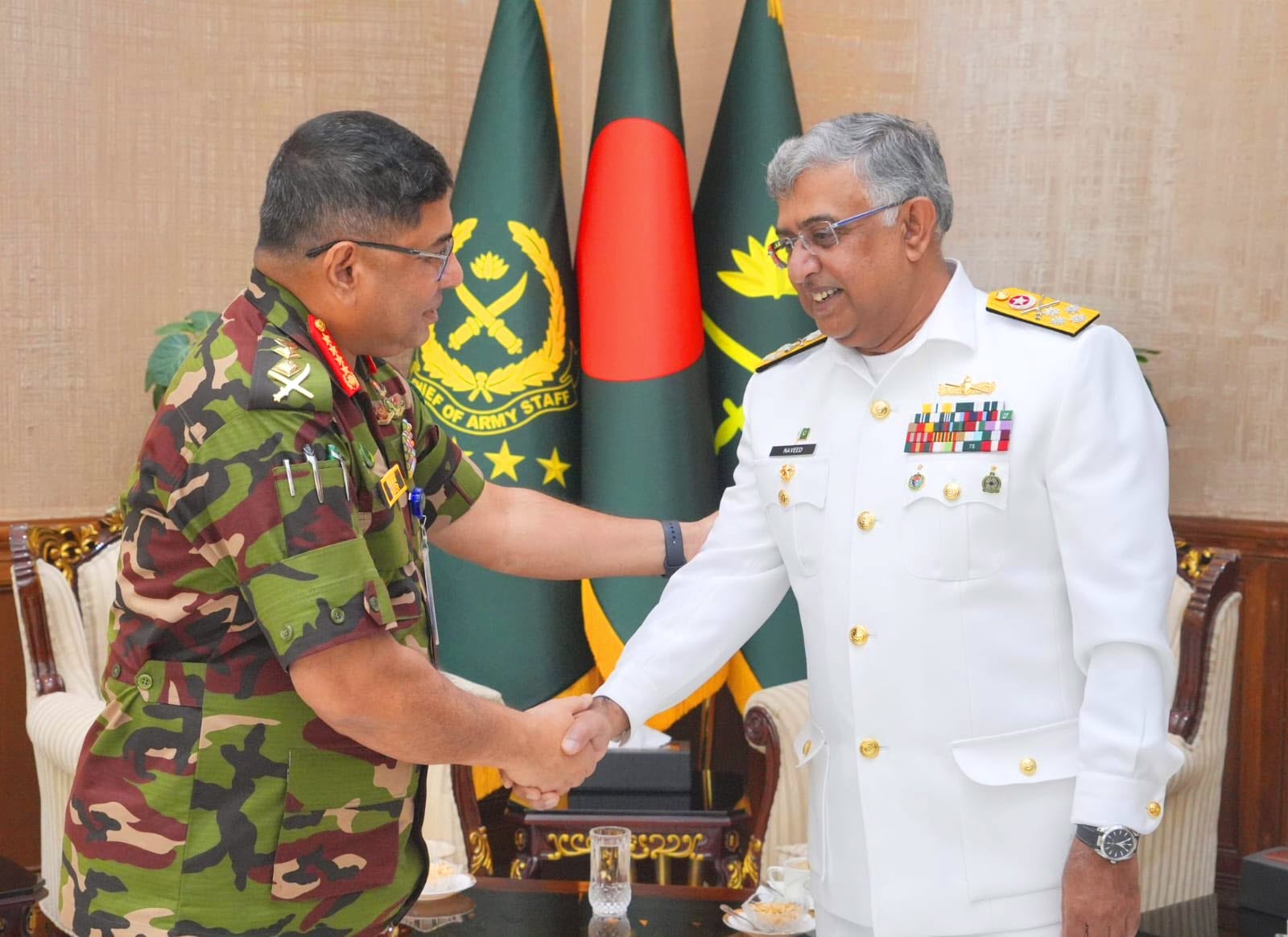 Pakistan and Bangladesh Naval Chiefs reaffirm enduring cooperation and joint commitment to peace and stability in the Indian Ocean. ⚓🇵🇰🇧🇩 #PakistanNavy #BangladeshNavy pic.twitter.com/wbbQXDrRIk