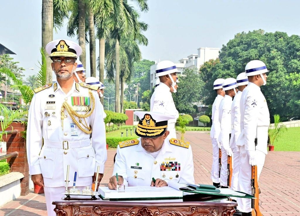 पाक नौसेना प्रमुख (सीएनएस) एडमिरल मुहम्मद नवीद अशरफ ने पाकिस्तान के आयरन ब्रदर बांग्लादेश का ऐतिहासिक हाई-प्रोफाइल और सबसे महत्वपूर्ण दौरा किया ताकि दोनों आयरन ब्रदर्स के साथ रक्षा – सुरक्षा और सैन्य संबंधों को मजबूत किया जा सके।: