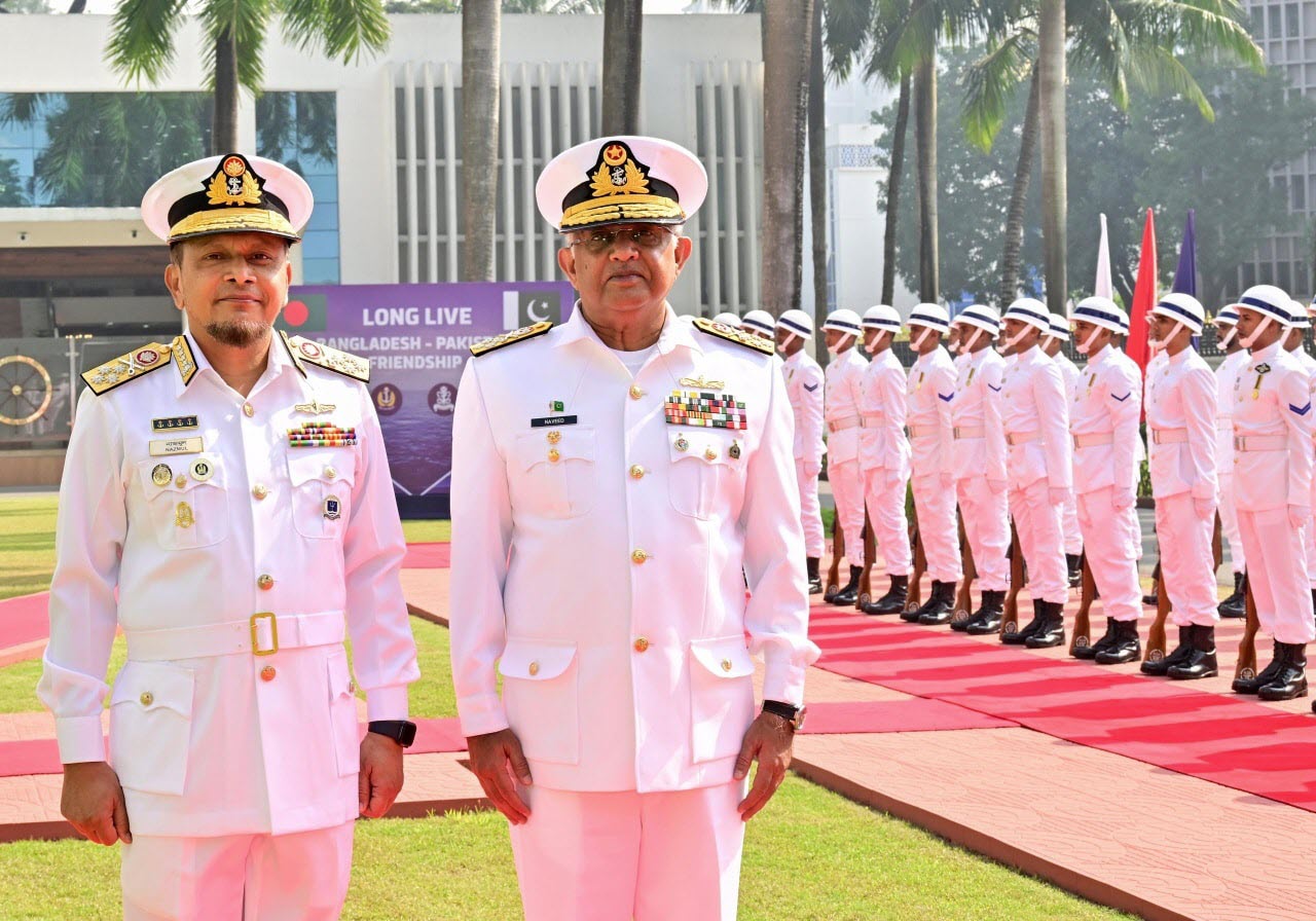 د پاکستان د سمندري ځواکونو مشر (سي این ایس) اډمیرل محمد نوید اشرف د پاکستان د اوسپنې ورور بنګله دیش ته تاریخي او مهم سفر وکړ ترڅو د دفاع – امنیت او پوځي اړیکو پیاوړتیا لپاره د دواړو اوسپنې وروڼو سره اړیکې پیاوړې کړي
